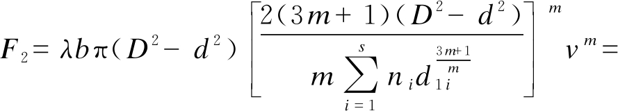 液压阻尼力实际上由两部分组成,分别为孔缩效应产生的阻尼力F1与粘滞摩擦阻尼力F2.设阻尼器活塞上开有S组孔径不同的节流孔,且第i组节流孔直径为d1i.设e为阻尼孔总面积,v为阻尼器相对运动速度,则液压阻尼力表达式[13]为
