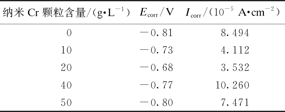 表2 不同纳米Cr颗粒含量下镀层的Tafel电化学动力学参数