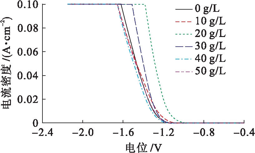 图3 不同纳米Cr颗粒含量下镀层的阴极极化曲线