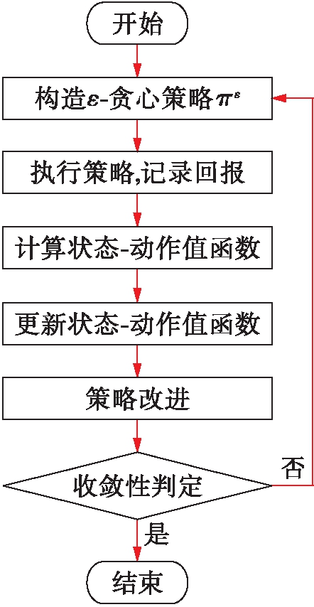 3) 策略改进.策略更新的目标在于获取最优的动作策略,保证在各环境状态下按照该策略执行所获得回报期望最高,策略改进公式可表示为