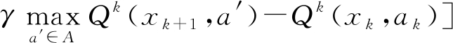 式中:Qk(xk,ak)、Qk+1(xk,ak)分别为第k次迭代前后所得的动作状态值函数;xk、xk+1分别为第k次迭代前后所得的环境状态;ak为第k次迭代所采用的动作;α为学习因子,用以控制迭代收敛速度;