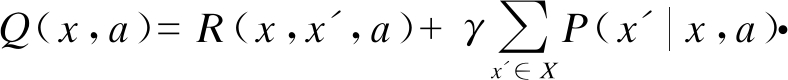 式中:Q(x,a)为环境状态x下采取动作a的动作状态值函数;R(x,x′,a)为由环境状态x经过动作a作用转移到环境状态x′所获得的回报;P(x′|x,a)为转移概率;