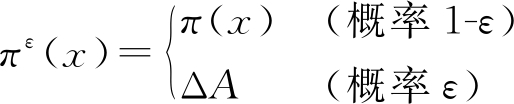 式中:π、πε分别为原策略和新构造的策略;πε(x)、π(x)为新策略和原策略在环境状态下所采取的动作;ΔA为均匀概率选择的动作;ε为人工给定的贪心系数.对于基于ε-贪心算法构造的新策略πε,将以概率1-ε采用原策略下的动作,并以总概率1-ε在动作空间中均匀选取任一动作执行.利用构造所得的ε-贪心策略作用于环境,并记录所获取的回报值.