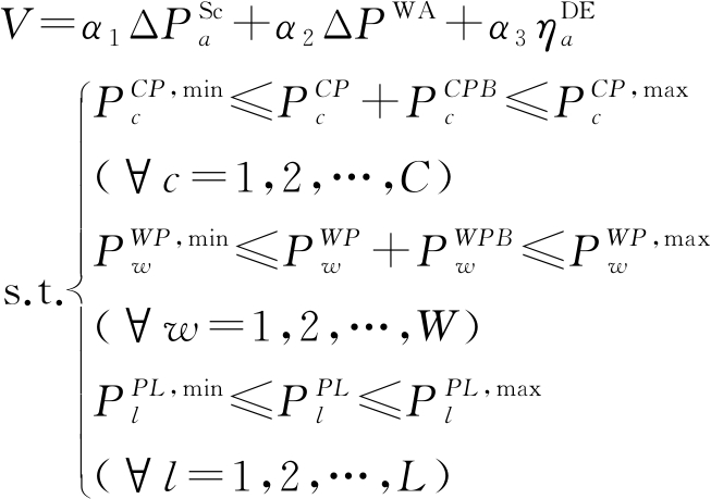 式中:分别为区域送出计划改进量、弃风电量与电网频率偏差调节贡献度;α1、α2、α3为对应的系数;