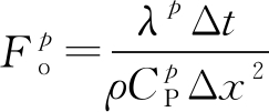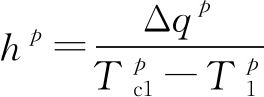根据能量守恒定律并结合隐式差分格式,得出t p至t p+1时间内各几何单元的温度场数学模型.第1号界面单元温度简化计算公式为