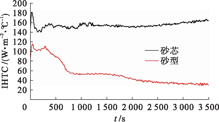 图7 外砂型、内砂芯与铸件界面的瞬态界面换热系数