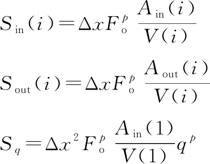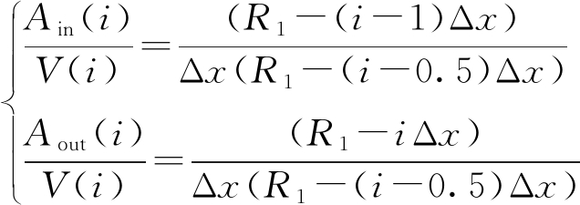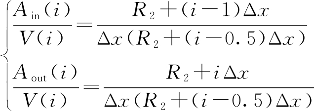 每个单元中热流流入面和流出面所对应的半径rin和rout值不同,为了简化数学模型,引入对应单元面积和体积的比值作为几何函数.砂型几何函数简化公式为