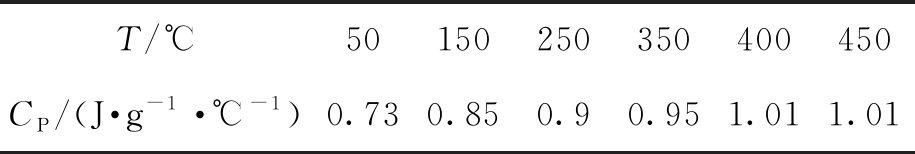 T/℃50150250350400450CP/(J·g-1·℃-1)0.730.850.90.951.011.01