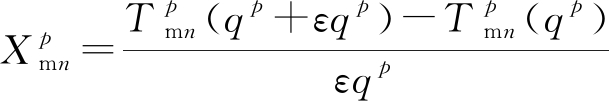 为使F(q)极小化,对目标函数求导,即令∂F/∂q=0.引入热敏感系数Xmn来表征温度相对于热流的一阶导数,且为p时刻微小热流εqp的变化对第n号热电偶所在单元计算温度的影响,Δqp为截断误差热流.假设通过微小热流εqp(ε<0.001)的改变得到新的热流(qp+εqp),并通过Taylor级数展开推导来求解界面修正热流