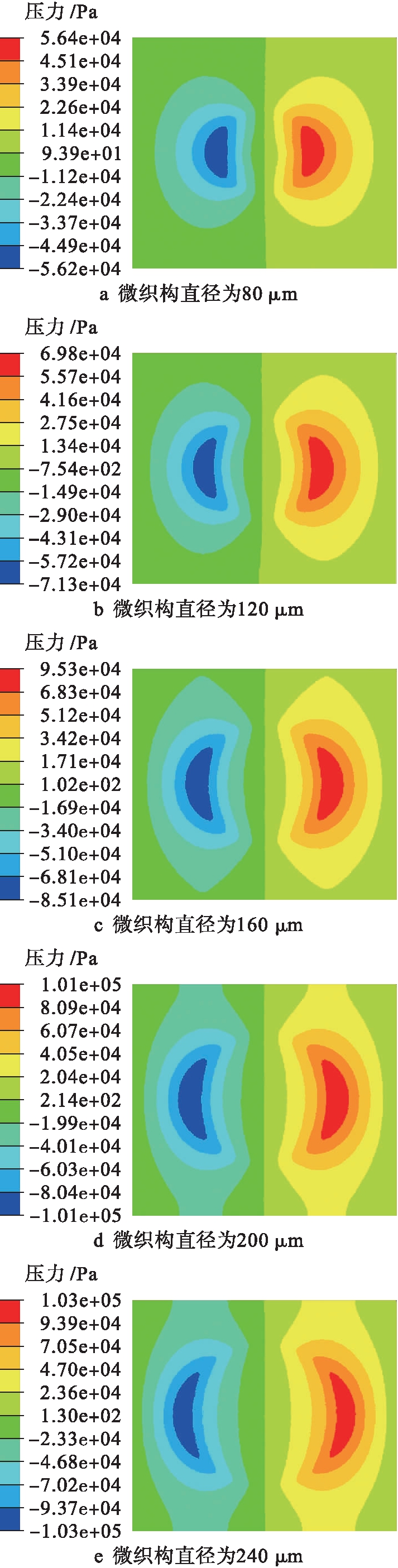 2.1.2 不同微织构直径对流体压力的影响