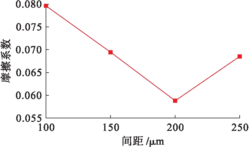 图15 摩擦系数随间距变化曲线