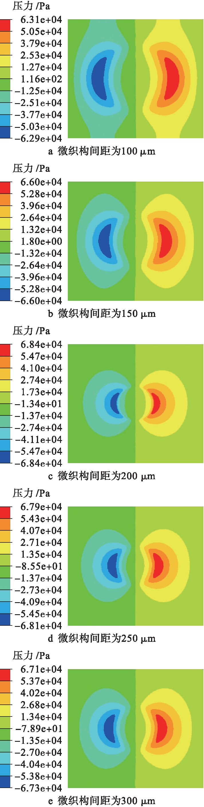 图9 不同间距微织构压力云图