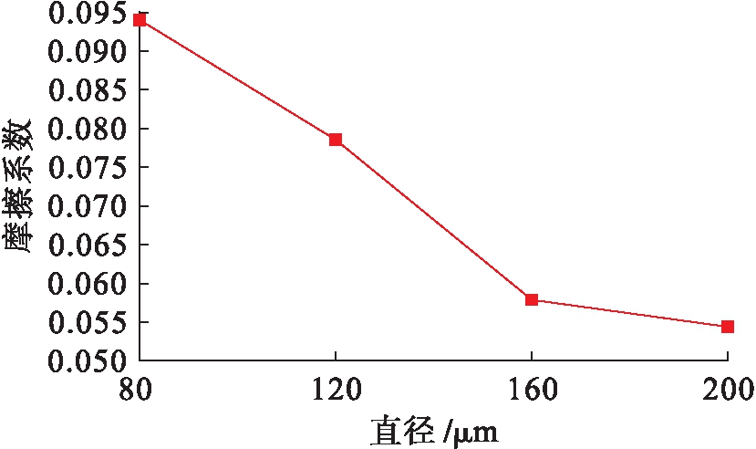 图12 摩擦系数随直径变化曲线