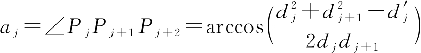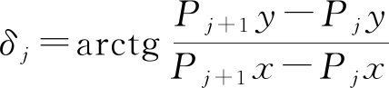 式中:ej为第j点的近似曲率值;δj为向量PjPj+1和x轴间的夹角.