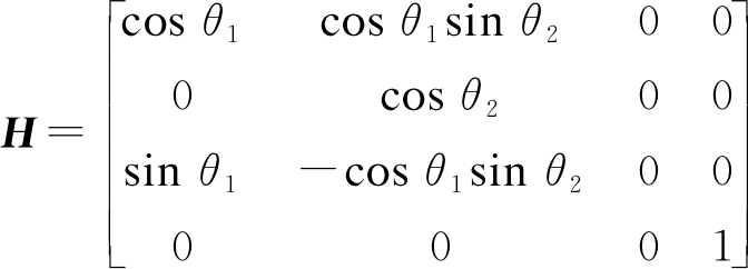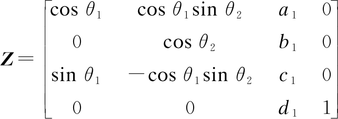 通过图1b所在的坐标系,结合投影的相关知识可知,轴测图可利用异中求同法获取.首先以y轴为核心顺时针旋转θ1角度,然后以x轴为核心逆时针旋转θ2角度,再向xoy平面进行正投影转换处理.获取的轴测映射转换矩阵为