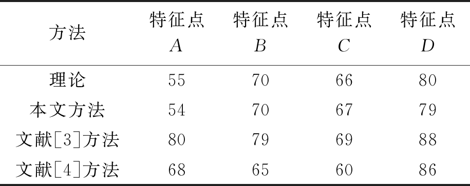 方法特征点A特征点B特征点C特征点D理论55706680本文方法54706779文献[3]方法80796988文献[4]方法68656086