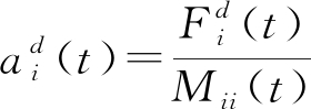 为粒子i在第d维空间上t时刻的加速度;Mii(t)为粒子i的惯性质量.