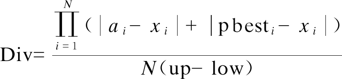 式中:N为种群规模;up为搜索上限;low为搜索下限;ai为粒子i的加速度;pbesti为粒子i的当前最优位置.