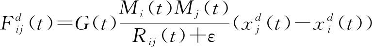 式中:randi为[0,1]上的随机数;为第d维空间上粒子i所受到的总作用力,即其他粒子对其作用力之和;