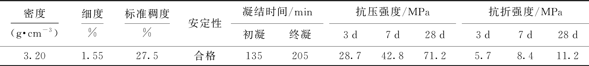 密度(g·cm-3)细度%标准稠度%安定性凝结时间/min初凝终凝抗压强度/MPa3d7d28d抗折强度/MPa3d7d28d3.201.5527.5合格13520528.742.871.25.78.411.2