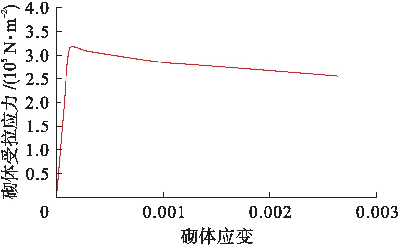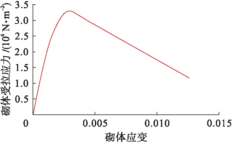 应变关系(见图13、14).砌体本构关系采用杨卫忠[12]提出的上升段为抛物线、下降段为线性的砌体受压、受拉应力