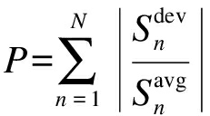 为第n个投影方向上所有像素灵敏度值的标准差;M为像素数;N为投影方向数.显然P值越小,灵敏度矩阵同一投影方向上灵敏度值的差异性愈小,敏感场越均匀.本文在计算P值前,先对灵敏度矩阵进行了预处理,将灵敏度矩阵中灵敏度值小于0的元素置为0,即P值评价的是正敏感区的灵敏度均匀性.
