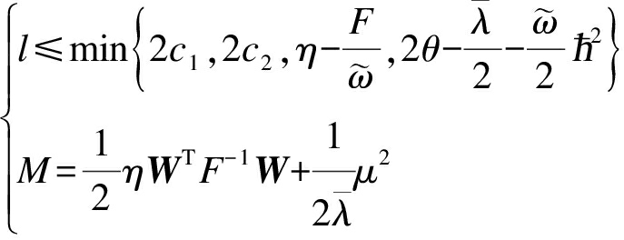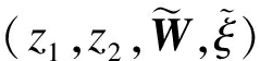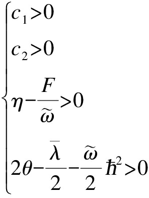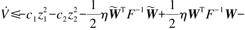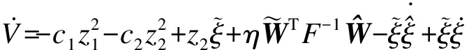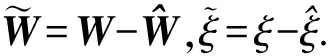 分别为W和ξ的估计值;F>0、η>0和c2>0为待设计参数;ω为观测器的辅助变量.定义估计误差为