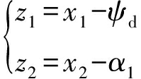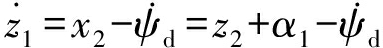 式中:α1为虚拟控制律,用于镇定z1子系统;ψd为期望航向角.对z1取时间导数,可得