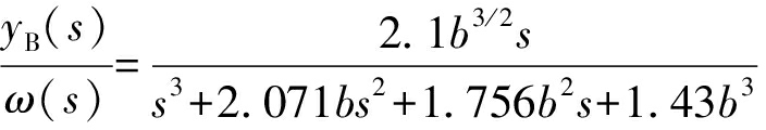式中:yB(s)为波浪运动;ω(s)为零均值高斯白噪声;b由下式确定,即