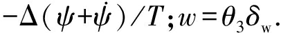 式中:ρ1为波浪系数;c1、c2为待设计参数.由波浪引起的等效舵角为