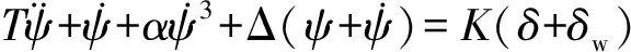 考虑模型中存在非线性、不确定项以及外界干扰等因素,采用Norribin非线性模型描述船舶的操纵特性[8],即