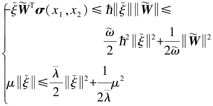 由于f(x1,x2)是未知函数,可采用神经网络估计技术处理,为了设计方便,利用RBF神经网络估计未知函数f(x1,x2),可得