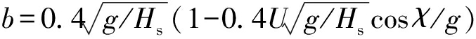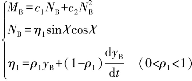 其中,Hs为有效波高,g为重力加速度,U为船舶的航速,χ为遭遇角.波浪对船舶施加的转舵力矩MB表达式为