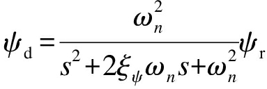 在船舶航向控制系统中,可以采用模型参考技术[8]产生期望的航向角ψd,模型参考的传递函数为