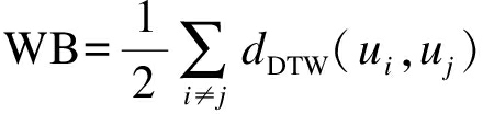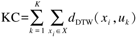 最终dDTW(xN,yN)即为最佳规整路径的总代价.给定楼宇负荷曲线序列X,聚类数目K,每个簇的原型设为uk.基于DTW的聚类算法目的是找到K个簇的DTW距离之和最小,即