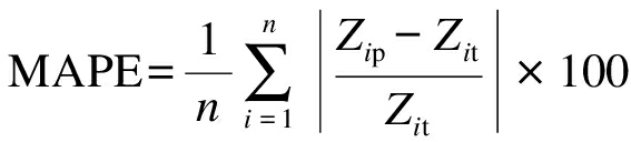 对实验预测结果的评估指标使用绝对百分比误差(MAPE)、平均绝对误差(MAE)以及均方根误差(RMSE),其具体计算表达式为
