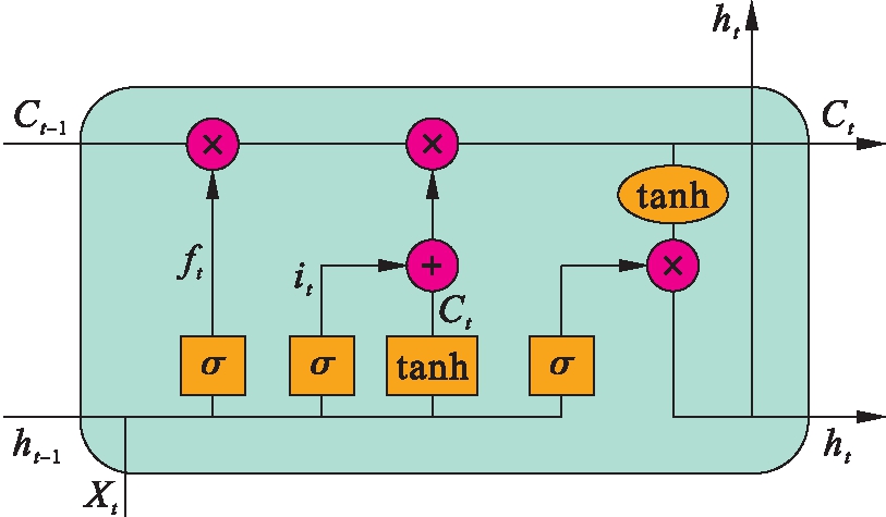 Hochreiter等[12]最早提出了LSTM神经网络,其对RNN做出了改进.RNN是用于处理序列数据的神经网络,随着历史信息和当前预测信息距离的增大,其丧失了从过去学习信息的能力,即梯度消失问题.而LSTM神经网络能够解决RNN的梯度消失问题,LSTM神经网络标准结构如图1所示.