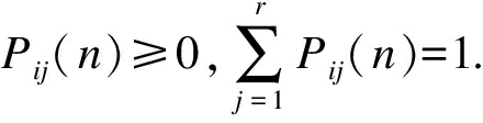 基于式(6)可以求出马尔科夫链n步的状态转移矩阵为