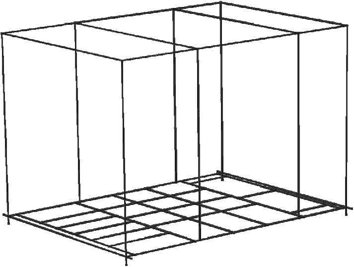 施工电源的结构中包括了较多隔断、铝门等非承力结构,为了简化施工电源的承载,同时为了充分考虑施工电源的抗风稳定性,减少复杂结构造成的仿真计算困难,将原本通过槽钢与镀锌钢板搭建的承力结构抽象为梁结构,简化后的梁结构模型如图4所示.相比于原本的有限元结构模型,梁结构线模型忽略了构件本身的复杂结构,能够更加直观地观察到拉压应力的大小和方向.