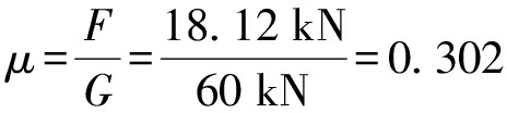 式中,S为迎风面面积.本文设计的施工电源迎风面S=8.84 m2,故计算可得F=18.12 kN.测算可以得到施工电源内部高低压侧与变压器的总质量约为6 000 kg,则施工电源底面所受重力G为60 kN.