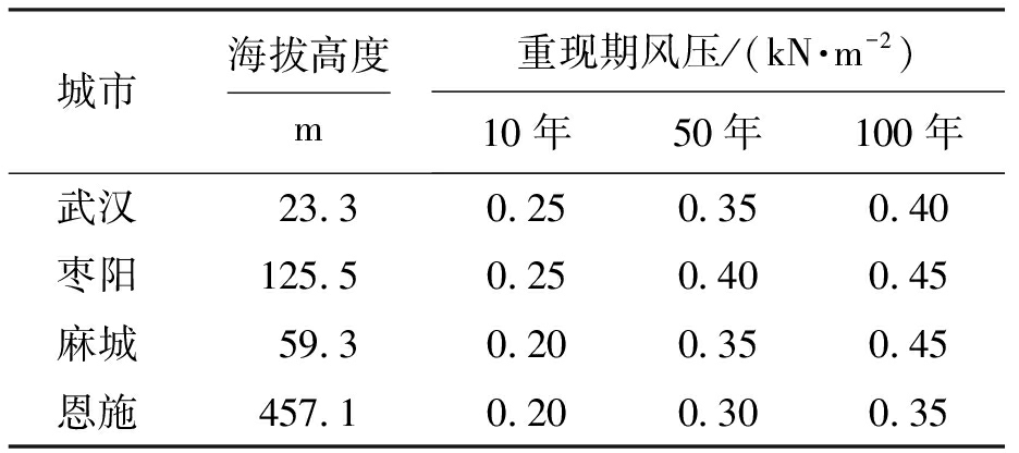 Tab.1 Basic wind pressure values in some cities of Hubei province
