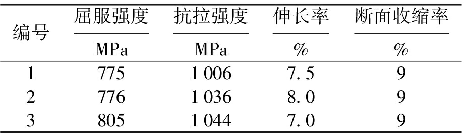 编号屈服强度MPa抗拉强度MPa伸长率%断面收缩率%177510067.59277610368.09380510447.09