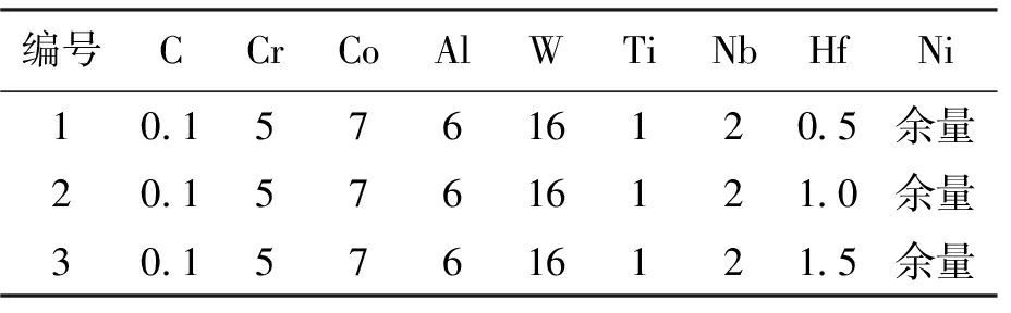 编号CCrCoAlWTiNbHfNi10.157616120.5余量20.157616121.0余量30.157616121.5余量