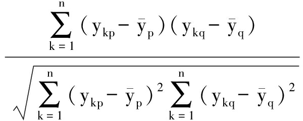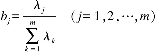3) 计算特征值和特征向量.求解|λI-R|=0,其中I为单位矩阵,计算相关系数矩阵R的特征值λj(j=1,2,…,m),并按从大到小的顺序进行排序.计算对应的特征向量μ1,μ2,…,μm,其中μj=(μ1j,μ2j,…,μnj)T,由特征向量组成m个新的指标,即