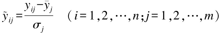 其中,yij为第i个样本的第j个特征值,将各特征值yij进行标准化处理,即