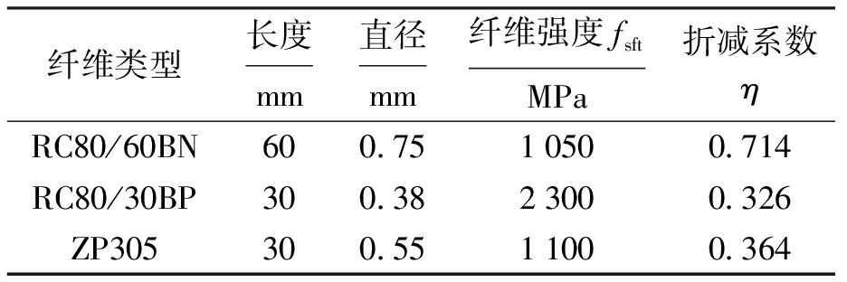 纤维类型长度mm直径mm纤维强度fsftMPa折减系数ηRC80/60BN600.7510500.714RC80/30BP300.3823000.326ZP305300.5511000.364