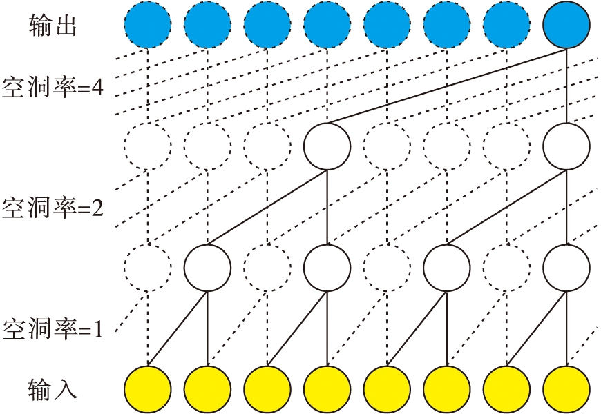 由于预测策略高度依赖于单步和多步电价预测的精确度,因此需要对预测模型进行优化.在电价预测中,深度学习技术逐渐被广泛应用,并在实践中已验证了其有效性和精确性[15],这是因为深度学习在非线性时间分析中具有更好的识别特征和探索不确定性的能力.这些模型通常是长短期记忆(LSTM)神经网络的变体,但其受到梯度消失和特征提取能力相对较弱等问题的限制.借鉴以往的电力负荷预测研究,本文提出了一种用于跨小时、多步电价预测的多尺度空洞深度卷积神经网络.传统的卷积操作只在邻域提取特征,这限制了神经元之间的关系,而空洞卷积运算在不增加参数的情况下可扩大卷积核的感受野并提取多个尺度的特征,图2为一个典型的多尺度卷积块.
