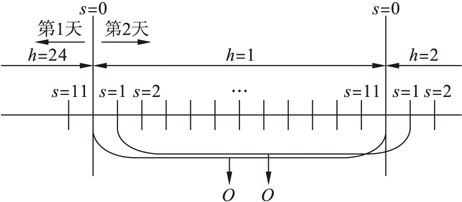 本文提出一种新的自备储能系统操作框架,其称为跨小时滚动时域,并引入包含5 min级市场清算价格的高分辨率数据集来提供更多的信息,以增强自备储能系统的预测和优化调度,操作原理图如图1所示.图1中h是当前一天的小时数,每小时包含12个细粒度的时间步,用s=0到s=11表示.O是应用到h中的调度操作决策.