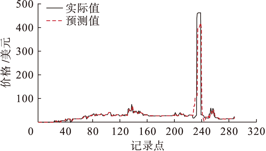 2)ARX模型[14].采用带有外生变量的自回归模型(ARX)实现小时级多步电价预测,同时采用阈值策略来检测价格波动中可能出现的峰值.对于每个时间步,ARX采用300个小时级价格的历史数据序列重训练.