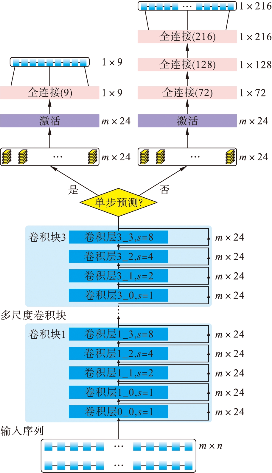 在价格预测领域已出现了一些基于卷积神经网络的研究成果,并反映出了一定的应用潜力[10-11],这也为优化调度自备储能系统提供了更多的选择.本文研究提出了一个基于多尺度卷积神经网络的5 min级周期多步电价预测模型,在未有额外计算开销的情况下可以提供更为理想的预测性能.